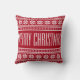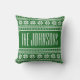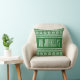 Personalised UGLY CHRISTMAS SWEATER throw pillows. Funny fair isle knitting Nordic snowflake pattern. Cute Holiday decoration design. Cosy winter home decor for Xmas party. Personalizable family name and seasons greetings ie Merry Christmas! Two tone. Double sided print in green and red colour. Fun interior accessories for dorm room, sofa, couch or bed in bedroom. Suitable for men, women and kids.
