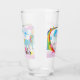 Custom personalised rainbow and unicorns themed drinking glass with name. Customisable unicorn design gift idea.