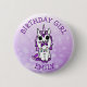 Add your daughter's name to this Adorable purple unicorn with butterfly on her nose, "Birthday Girl" button.
