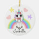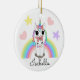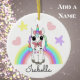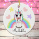 Personalised Unicorn, Butterfly and Rainbow Christmas Ceramic Ornament.