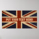Personalised Union Jack Poster ~ Add your own text to this stylised vintage look union jack poster. Place a name or slogan for a great unique gift! Easily change text style, font and colour as you wish.