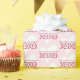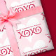 Elevate your Valentine's Day gift-giving with personalised wrapping paper. Design features a cute XOXO design along with hearts in a red, pink, and white palette. Personalise the template with your custom message. © Kimbellished, LLC