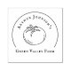 Cute Personalised stamps for Vegetable growers with tomato in the centre and name of the farm and vegetable grower around it. You can add street address as well.