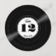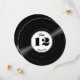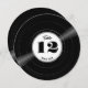 A black and whiteretro vinyl record style round paper table number sign for your wedding. This fun round sign features bold fun easy-to-read numbers and the label is personalised with your names. Whatever kind of music you love, this nostalgic LP style table number is an elegant accent for your wedding tablescape Country, disco, hip hop, metal, rock and roll, or standards, your guests will be in the groove.