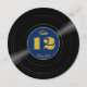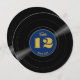A deep rich blue retro vinyl record style round paper table number sign for your wedding with golden-coloured accents. This fun round sign features bold fun easy-to-read numbers and the label is personalised with your names. Whatever kind of music you love, this nostalgic LP style table number is an elegant accent for your wedding tablescape Country, disco, hip hop, metal, rock and roll, or standards, your guests will be in the groove.