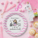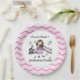 Violin Player paper plates features a stick figure girl violin player design with a wide border of chevron stripes of pink, light pink, grey, and white. You can personalise these violin player paper plates!