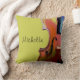 Personalised violin throw pillow, with a violin image on a yellow background. with cute black typography lettering, you can customise with your own text. A lovely addition to your musical decor!