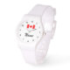 Personalised watch with name and American flag on numbered dial plate print. Cool watches with flag of Canada. Patriotic maple leaf design. Great gift idea for Canada Day. Personalizable with name or other text. Customise for men and women.