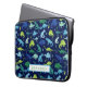 Personalised Watercolor Dinosaur Pattern Blue Green Kids Laptop Case. Watercolor dinosaurs in green, and blue on a dark blue background. Personalise with name. www.SamAnnDesigns.com