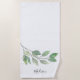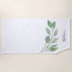 This botanical beach towel features watercolor greenery and stylish script typography.