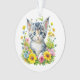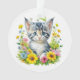 Personalised Watercolor Kitten Flowers Christmas Ornament