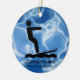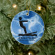 Personalised Waterskiing Ornament Christmas 20xx on a blue wavy water background, with customisable text.