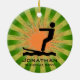 Personalised Waterskiing Ornament Christmas 20xx on a green starburst background, with customisable text.