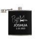 Personalised Wedding flask best man gift that can be personalised with the best man's name as well as date of wedding. The black flask has an elegant, modern script design with a bow tie graphic. A great gift for groom to give his best man.