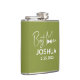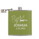 Personalised Wedding flask best man gift that can be personalised with the best man's name as well as date of wedding. The green flask has an elegant, modern script design with a bow tie graphic. A great gift for groom to give his best man.