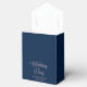 Personalised Personalised Wedding Day Elegant Navy Blue Gable Favour Box with a white bow and beautiful pink calligraphy . Best wedding party favour box ever. Add Bride and grooms name and date of wedding. Add your favourite favour for a one of a kind gift.
