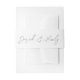 Personalised wedding invitation belly band featuring a modern script. Personalise with your desired name. A great complement for your wedding invitations, announcements, and more. Use the template to create your own personalised wedding invitation belly band.