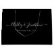Simple yet elegant gift bag features a black background paired with a whimsical script and traditional serif font. Personalise this design with names and wedding date. Further customise this design by selecting the "customise further" link under the personalise this template section.