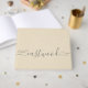 A trendy modern and elegant minimalist couple's name monogram in vintage serif type, contrasted with a handwritten style swash script font on a cream faux linen effect background. Elegant wedding guest book for newlyweds. Blending vintage and modern styles.
