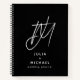 Stay organised while planning your wedding with this personalised notebook featuring a large brushed script two initial monogram with the couple's name and "wedding planner" in modern sans serif font. The notebook includes checklist paper to keep track of all the important details leading up to the big day. The black and white design coordinates perfectly with our matching wedding planner binder.