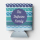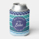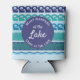 A fun can cooler with a wave background and the message, "What Happens at the Lake...Stays at the Lake" Add family name, couple's name, lake's name or boat's name for personalisation.