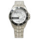 Has heft and feel of expensive stainless steel quartz watches. Good band with safety catch. I removed links, which is easy because engraved arrows show direction to push the linking pins. As always by this seller, the image (a railroad logo) is a perfect reproduction of my emailed image, and is precisely spaced and aligned.