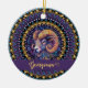 Adorn your space with this Personalised Whimsical Aries Zodiac Dot Mandala ceramic ornament, a striking piece that blends intricate artistry and astrological charm. This unique ornament features a highly detailed mandala centred around a stylised ram’s head, symbolising the bold Aries spirit. The ram is embellished with elaborate spirals and swirling patterns, creating a captivating visual texture, while a vibrant palette of purples, blues, and golden hues lends a sense of richness and elegance. Encircling the central ram motif are meticulously arranged decorative arcs, filled with repeating petal and teardrop designs, reminiscent of classic mandala art. Perfect for adding personality to your holiday decor, hanging on your wall, or gifting to someone special, this ornament can be personalised with a name to make it truly one-of-a-kind. Infuse any space with vibrant energy and symbolic beauty through this artistic ceramic ornament.