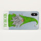A whimsical holiday gnome dressed in a festive green holiday outfit printed with red candy canes and Christmas stockings inspired this cell phone case. It is sure to delight the Christmas gnome lover on your list! The holiday gnome wears a matching hat with a white tassel at the end. His delightful grey beard adds a touch of fun. The background gives the appearance of gentle snow falling as the elf stands on a bed of snow to compliment the design. Below the graphic your name is set with modern holiday green font to add personalisation to create a unique holiday keepsake.