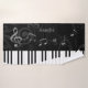 A whimsical musical design with curved piano keyboard keys and musical notes on a subtle flourish pattern in grey on a black background. Ideal for the pianist, piano student or the music lover. Name personalisation appears on the bath and hand towel