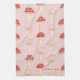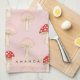 Personalised Whimsical Red Pink Mushroom Pattern Tea Towel