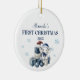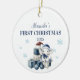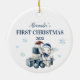 Celebrate a little one’s magical first Christmas with this soft and serene winter design. A cuddly white bear wrapped in a navy scarf sits beside a stack of cosy blue baby blankets, surrounded by delicate snowflakes. This custom keepsake captures the warmth, love, and charm of baby’s earliest holiday memories — timeless, neutral, and perfect for baby boys or gender-neutral gifts.