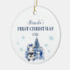 Celebrate a little one’s magical first Christmas with this soft and serene winter design. A cuddly white bear wrapped in a navy scarf sits beside a stack of cosy blue baby blankets, surrounded by delicate snowflakes. This custom keepsake captures the warmth, love, and charm of baby’s earliest holiday memories — timeless, neutral, and perfect for baby boys or gender-neutral gifts.