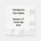 Custom Personalised Small 4.75" Square WHITE Coined Edge Cocktail Disposable Paper Napkins Blank Design Template. Design, create, make your own fully customisable paper napkins. Personalise and upload your own image, photo, text, pattern, monogram, bride & groom names, wedding motif, logo or promotional, marketing brand, perfect for a wedding buffet or any special event from a kid's birthday to summer party or large celebration.