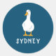 Personalised White Duck Illustration Navy Blue Classic Round Sticker