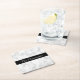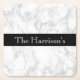 Elegant paper coasters designed with a faux white and grey marble pattern. Accented with a band of black positioned at the centre of the coaster with your last name or company displayed with elegant white font.