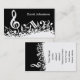 Perfect business cards for the music lover or musician with an eye-catching modern design featuring white jumbled musical notes and a large treble clef on a classical black background. The design includes customisable text for a name or text of your choice to create a unique and personalised music gift.