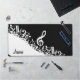 Personalised White Jumbled Musical Notes on Black Desk Mat