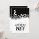 The perfect Birthday party invitation for the musician or music lover with a design featuring white jumbled musical notes and a large treble clef on a classical black background. Easy to customise with your own text for your own special occasion.
