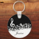 Personalised White Jumbled Musical Notes on Black Key Ring