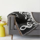 Personalised White Jumbled Musical Notes on Black Throw Blanket
