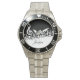 Has heft and feel of expensive stainless steel quartz watches. Good band with safety catch. I removed links, which is easy because engraved arrows show direction to push the linking pins. As always by this seller, the image (a railroad logo) is a perfect reproduction of my emailed image, and is precisely spaced and aligned.