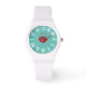 Personalised modern stylish light teal, white and red wristwatch design with the owner's first and last name.