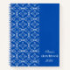 Elegant dark blue notebook featuring a white vector pattern with a customisable name and year on the cover. Perfect for journalling, school, planning, or as a thoughtful personalised gift.