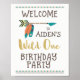 This boy's wild one 1st birthday poster features some faux gold text, an arrow, two feathers and some simple dividers on an off white colour background. I've included a simple diamond shaped border at the top and base of the design. I wanted to create some tribal, Aztec or bohemian style wild one items for the store. I love the theme and also wanted to experiment with gold foil textures. Some design birthday invitation is available at the store. There are two versions of this poster. The border is different and reflects two different invitations at the store.
