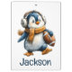 A fun and cosy winter design featuring a cheerful penguin dressed in warm earmuffs and a scarf, proudly holding a football. This playful illustration captures the excitement of young athletes who love the game even in snowy weather. With the option to personalise it with your child’s name, this design becomes a special keepsake that celebrates both sports passion and seasonal charm. Perfect for home and living products, it brings warmth, energy, and a touch of winter joy to any space — a delightful gift for little football fans.