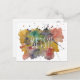 This bold, bright postcard is perfect for dropping a note to your artsier friends. This postcard features smattering of watercolor paint splashes in a random array of colours. Mostly a golden yellow, there's also green, purple, red, blue... and all those muddier-but-nonetheless-pleasing-enough colours that happen when two or three accidentally blend with the water.