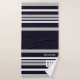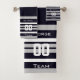 Navy blue, white, and grey. Personalised with name,#, team, sports fan Team Towel set. Design by Sandy Closs.
