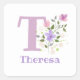 Personalised with Name and First Initial. Design features Monogram & Name with Flowers either side in a water colour pastel style. Example name is Theresa. Could be for anyone with a name beginning with T.