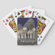 Personalised Wolf Themed Playing Cards design features the image of wolves standing in front of their den against a night sky. The name you supply appears just below the wolves in a silver coloured, decorative font.