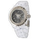 Crafted to capture hearts and turn heads, this elegant women's watch features a captivating dark (black/grey) dial with a sophisticated marble-inspired pattern, exquisitely detailed with lustrous gold veins and classic white Roman numerals. The watch face is framed by a brilliant rhinestone-accented bezel, adding a continuous shimmer that catches the light with every movement. Complementing this stunning dial is a smooth, high-quality white enamel alloy bracelet with a secure trifold foldover clasp, ensuring both comfort and glamour.